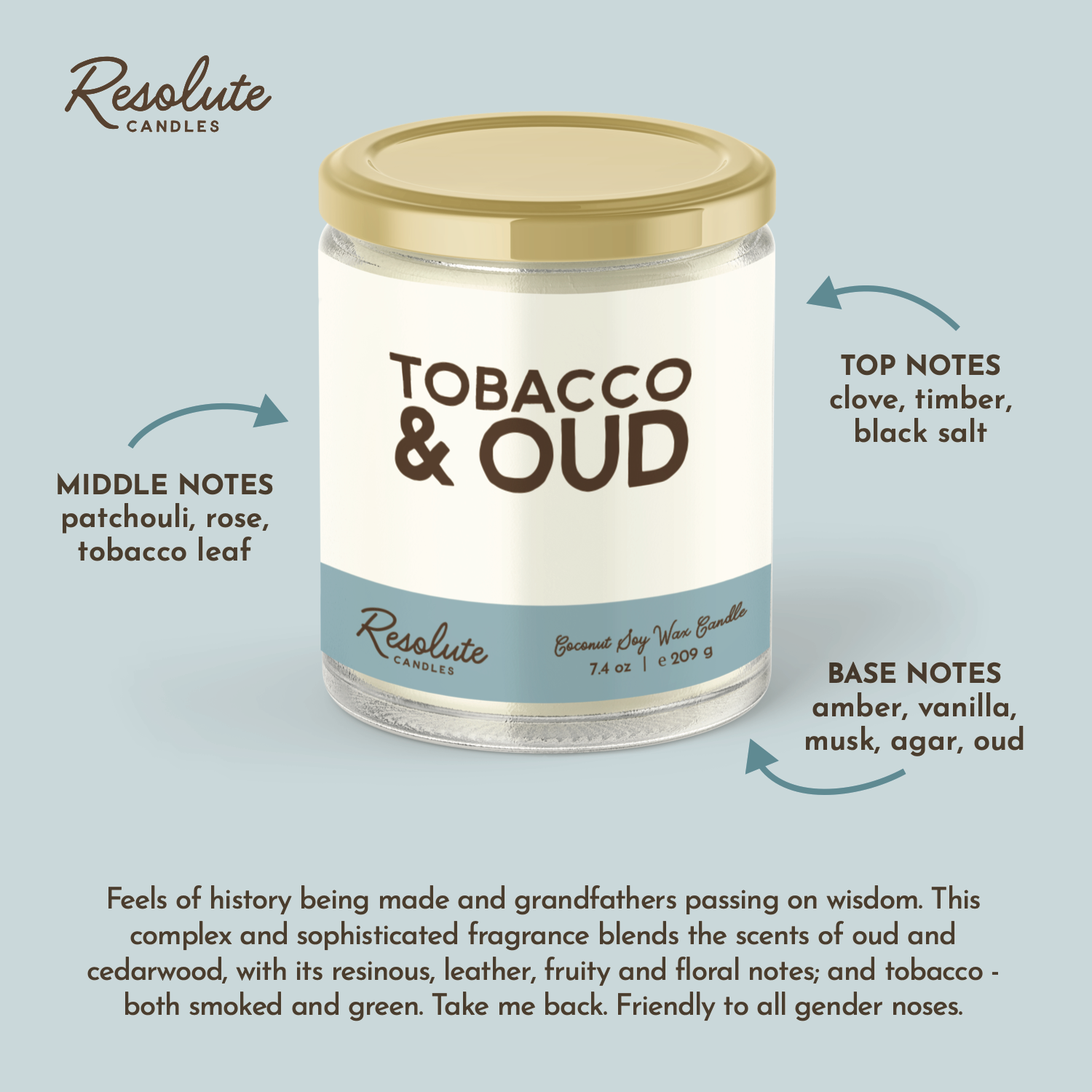 Feels of history being made and grandfathers passing on wisdom. This complex and sophisticated fragrance blends the scents of oud and cedarwood, with its resinous, leather, fruity and floral notes; and tobacco - both smoked and green. Take me back. Friendly to all gender noses.